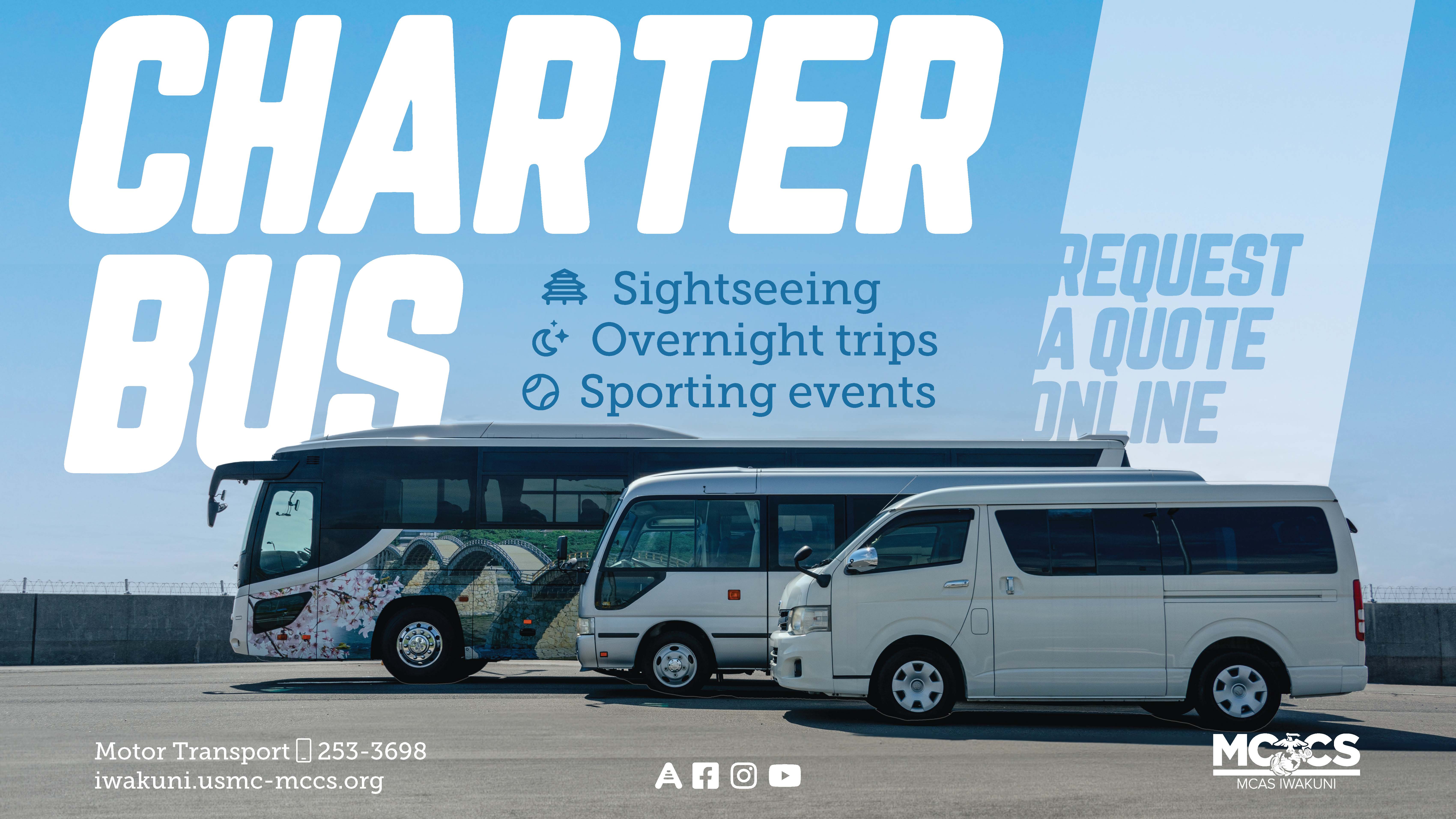To request a quote download the Charter Bus Request Form below and mail it to OMB.iwakunibusscheduling@usmc-mccs.org